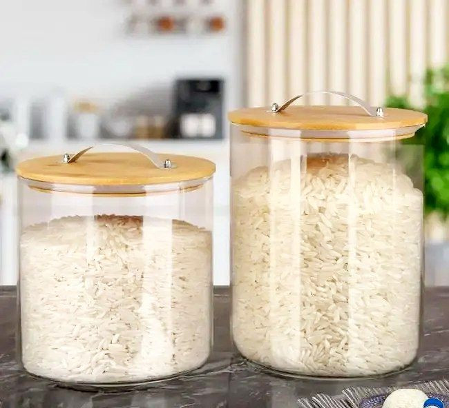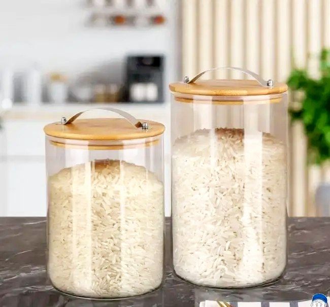 🆕سطل برنج پیرکس درب چوبی 4 سایزی